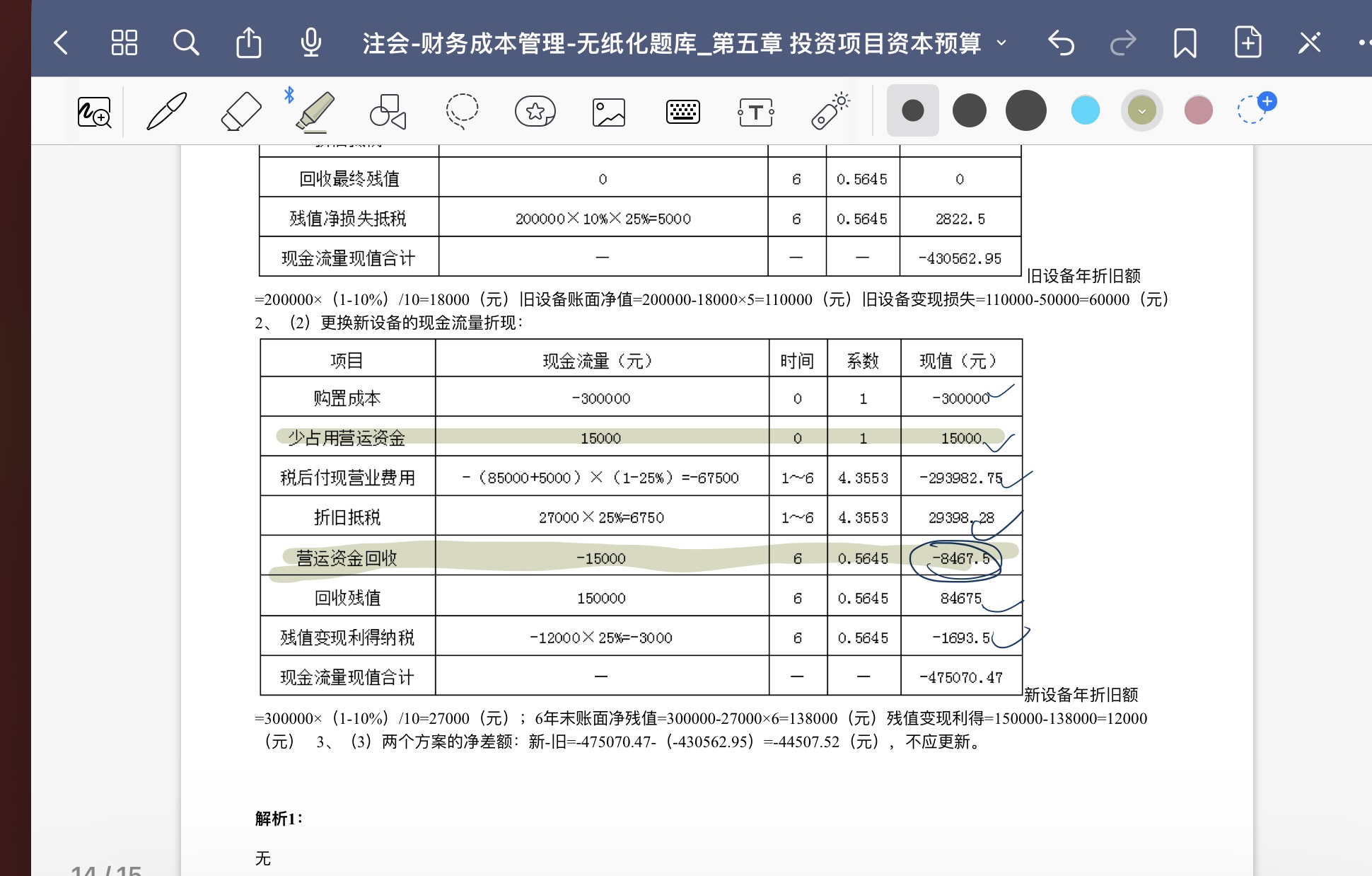 首页 >  全部问答  > 老师麻烦看一下标绿的部分 我能理解减少占用营运资金15000是在0时点增加15000,可是终结点为什么要收回15000呢,本来题目说的不就是减少了15000吗,并没有说实际还投入了15000呀?
